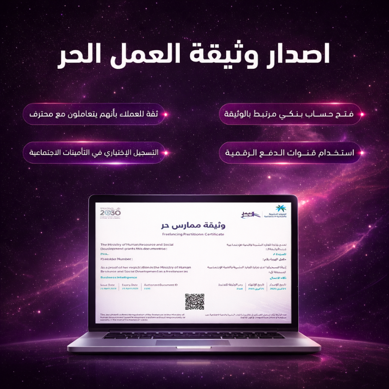 - 📜 وثيقة العمل الحر هي وثيقة معتمدة صادرة عن وزارة الموارد البشرية والتنمية الاجتماعية في المملكة العربية السعودية.
